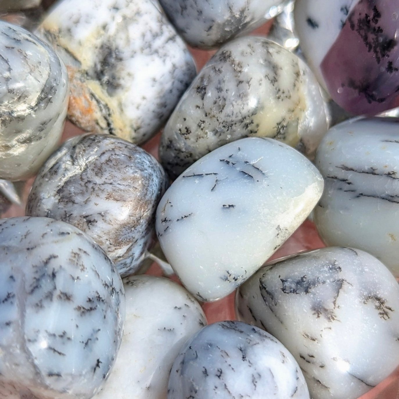 Merlinite is a fantastic stone to work with to bring yourself closer with Mother Earth. This stone is fantastic for support with gentle self-expression, grounding and connecting with your inner most desires. To practice grounding with Merlinite is said to bring happiness and joy while stimulating the dormant creativity inside us.