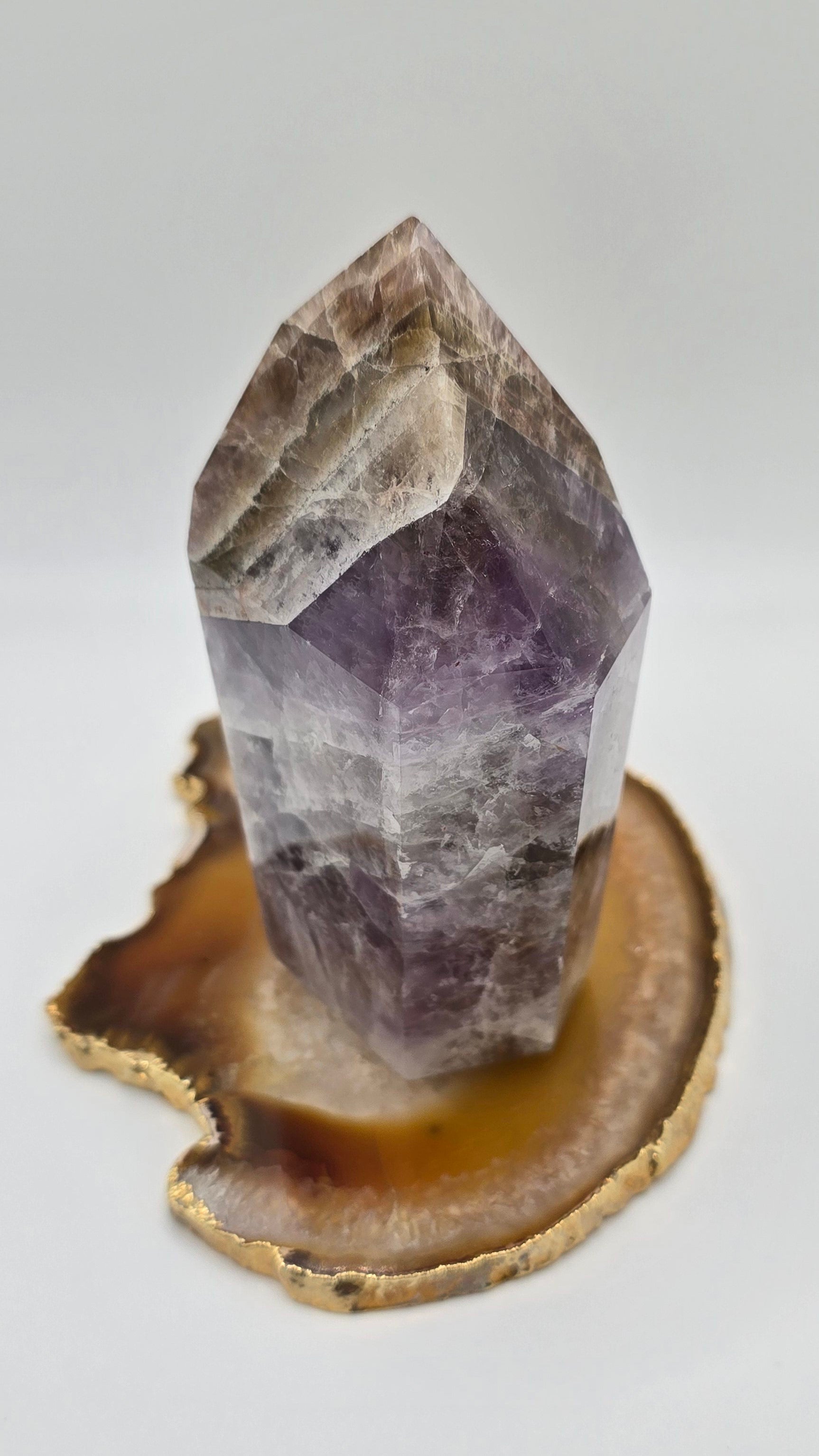 Super Seven, also known as Melody Stone or Sacred Stone, is an extremely rare mineral with seven crystals in one. The crystals are Amethyst, Cacoxenite, Goethite, Lepidocrocite, Rutile, Smoky Quartz, and Quartz (which all the minerals are usually naturally encased in).
