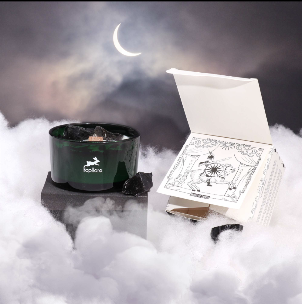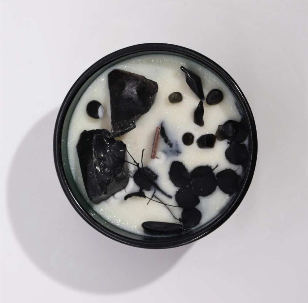 Step into the mystical world with Hop Hare Crystal Magic Flower Candle - The Knight of Swords, crafted with Black Obsidian Gemstones and dry flowers.